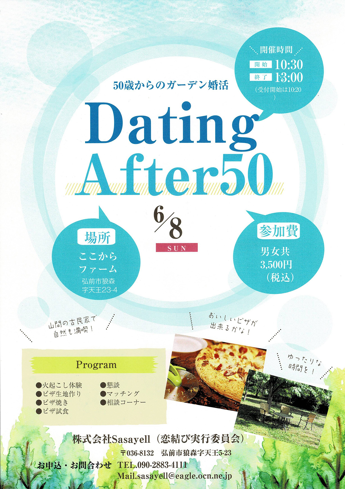 | 募集定員等 | 50歳以上の独身男女 男女各5名 |