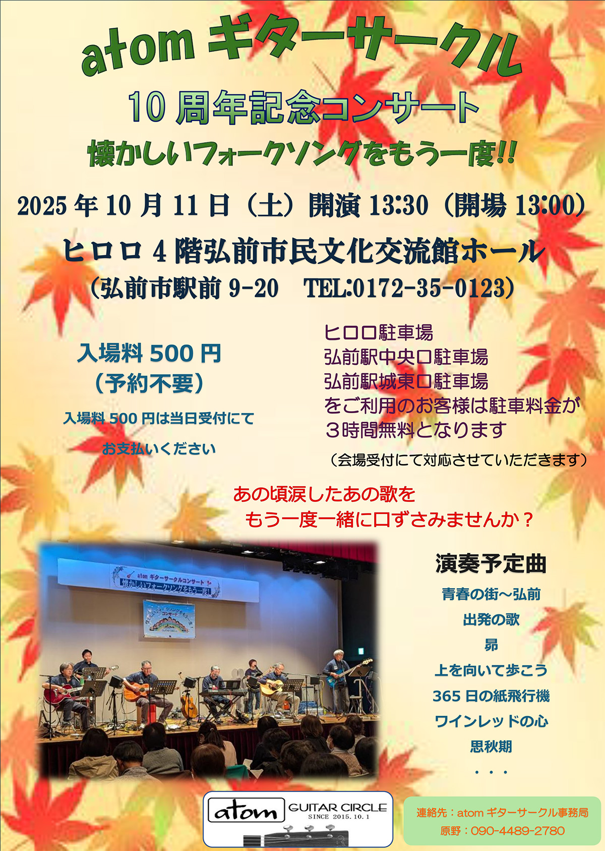 | お問い合わせ | atomギターサークル事務局 090-4489-2780(原野) |