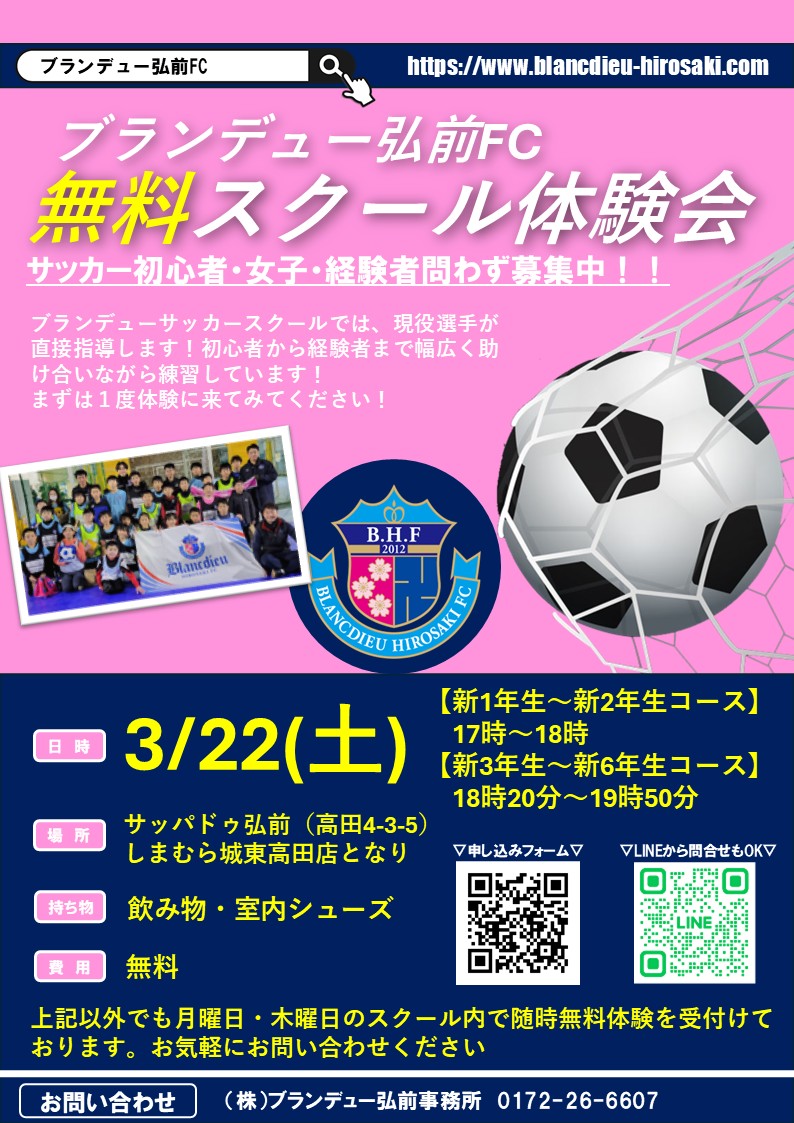 この機会にぜひブランデュー弘前FCサッカースクールの無料体験会にご参加ください。