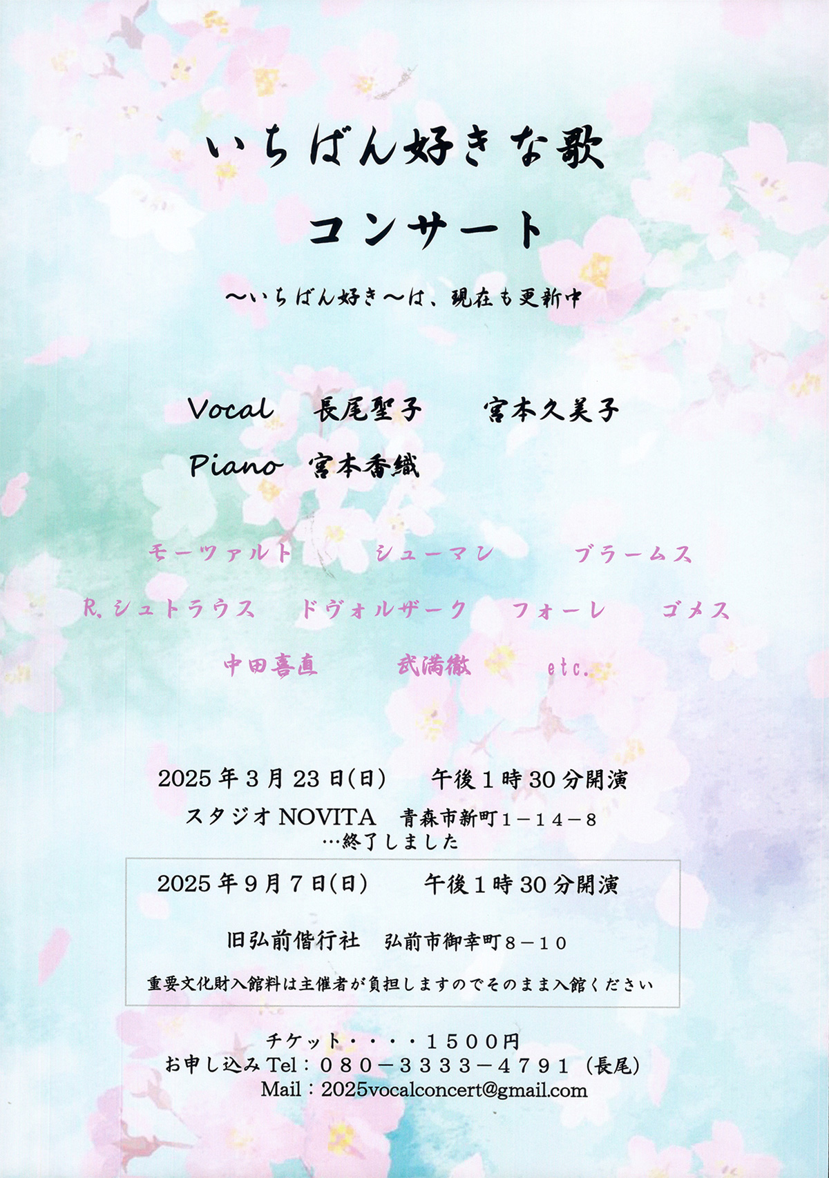 Vocal 長尾聖子 宮本久美子Piano 宮本香織