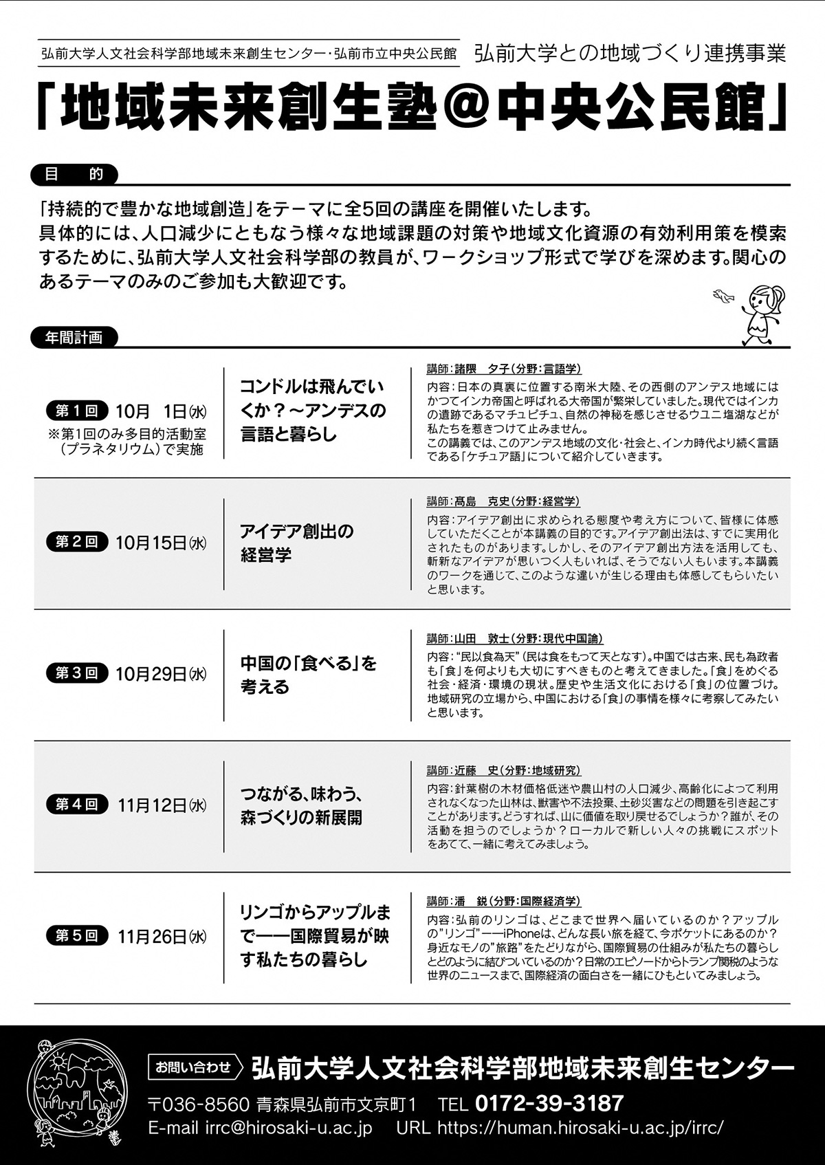 | 申込・お問い合わせ | chuuoukou@city.hirosaki.lg.jp |