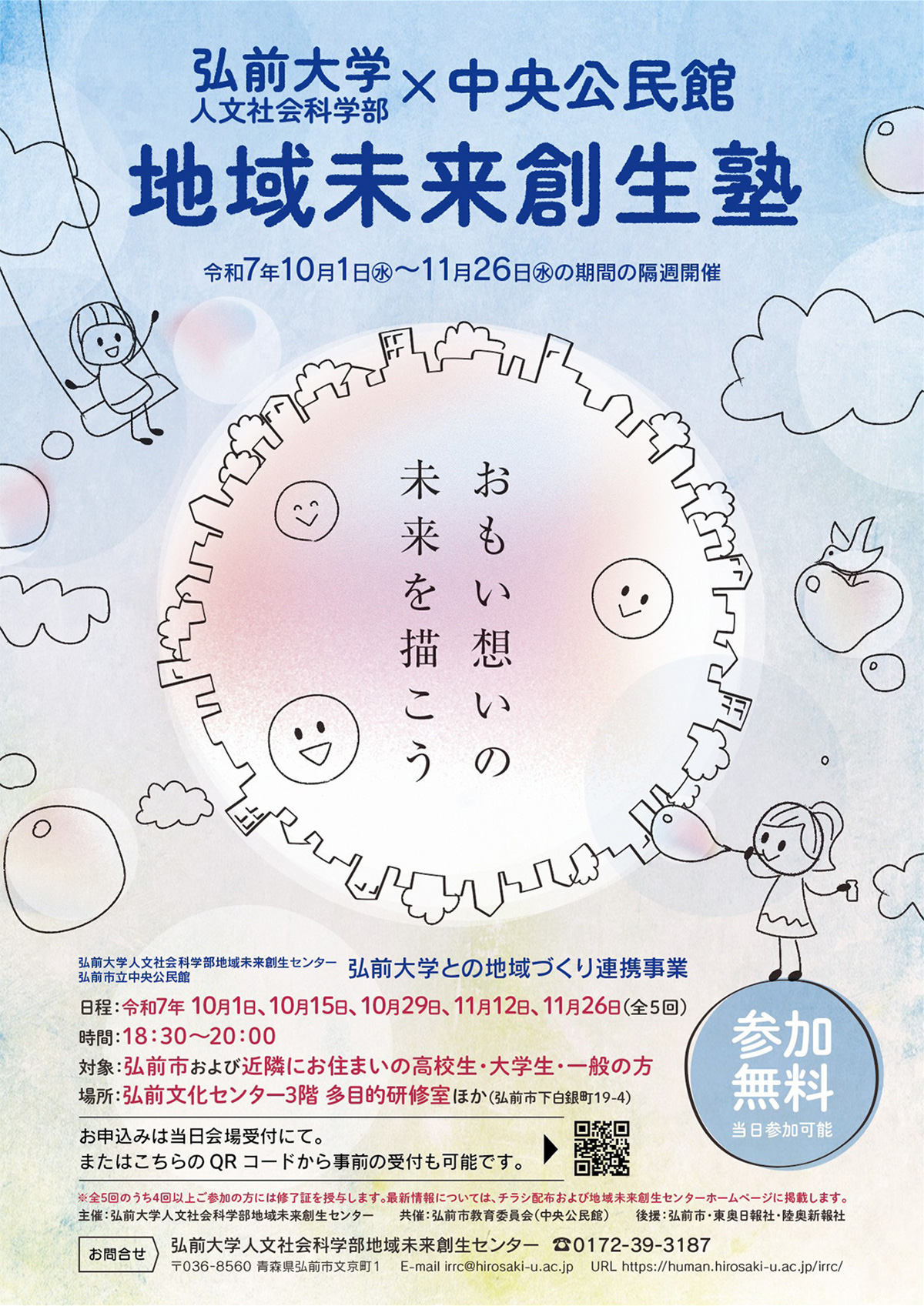 | 対象 | 弘前市および近隣にお住まいの高校生・大学生・一般の方 |