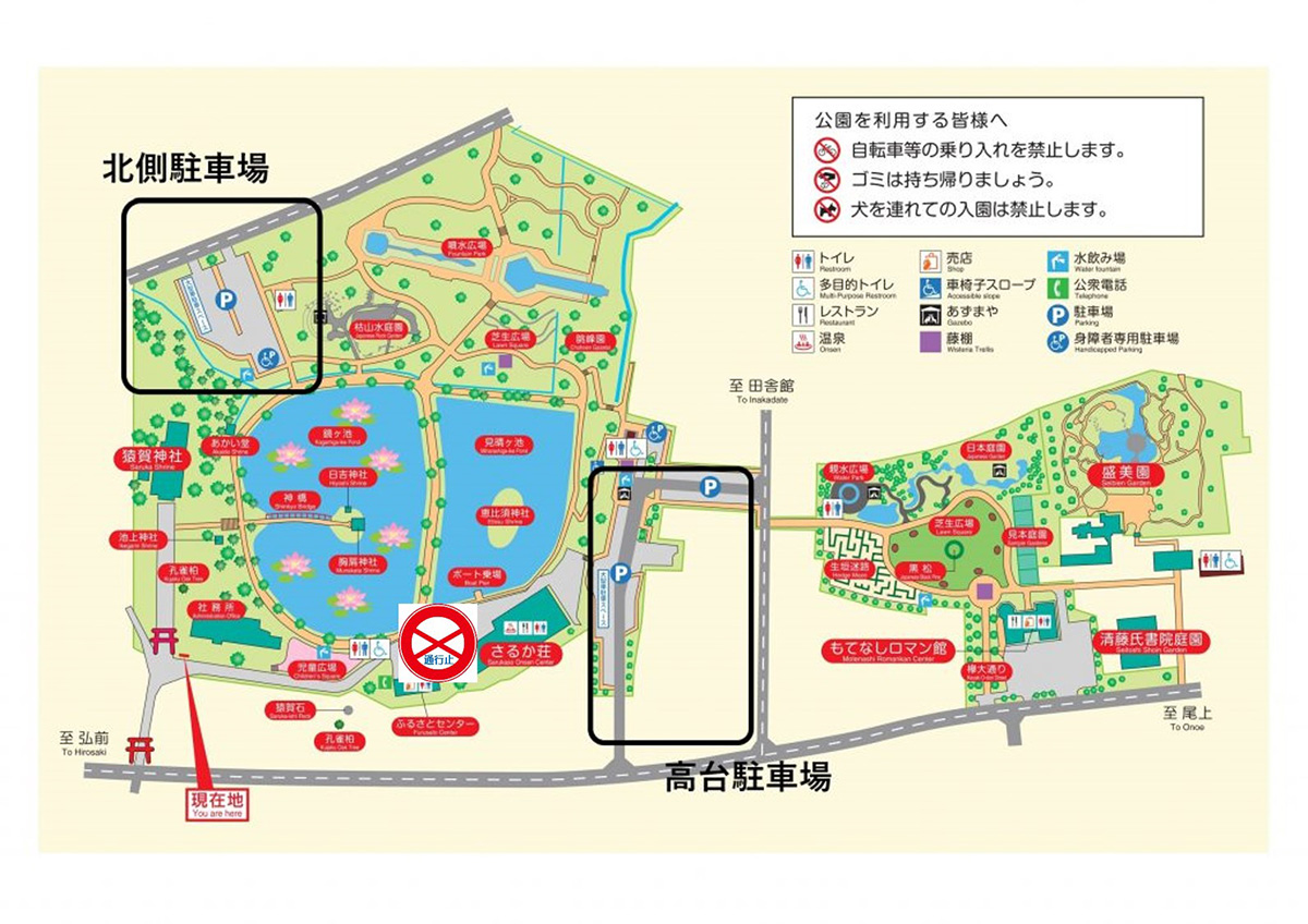 | 駐車場 | ※当日はさるか荘前駐車場は通行止めとなります。 猿賀公園内の高台駐車場及び北側駐車場をご利用ください。 |
