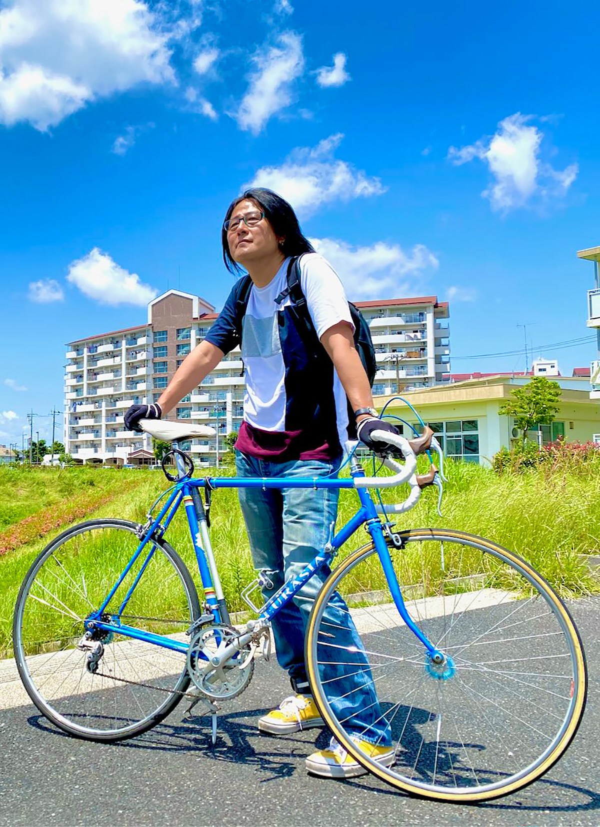 コロナ禍の2020年より1977年製ブリヂストンロードレーサーで弾き語りツアーを敢行、4年かけて日本縦断を達成。