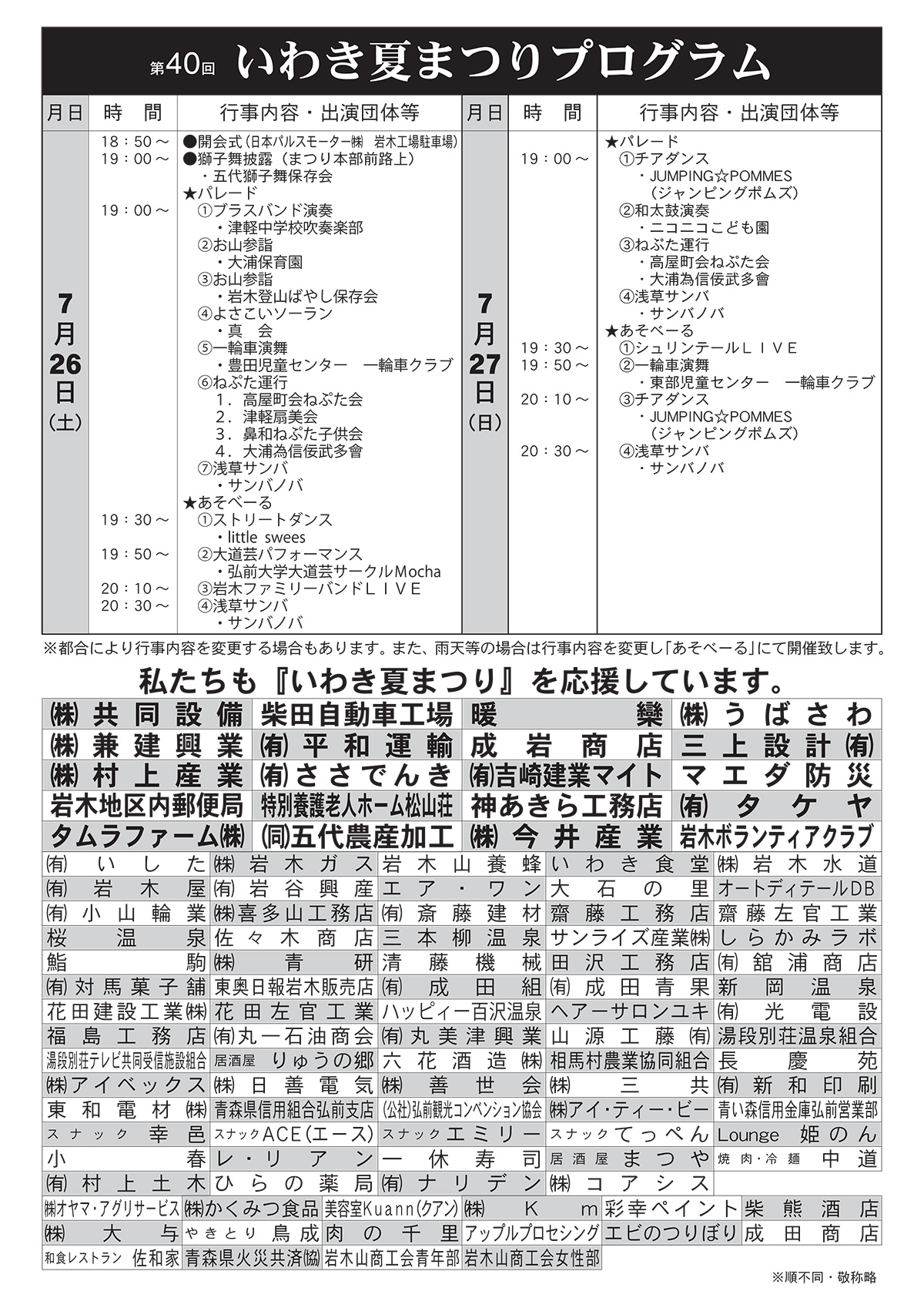 第40回いわき夏まつりが令和7年7月26日(土)、27日(日)の2日間開催されます。
