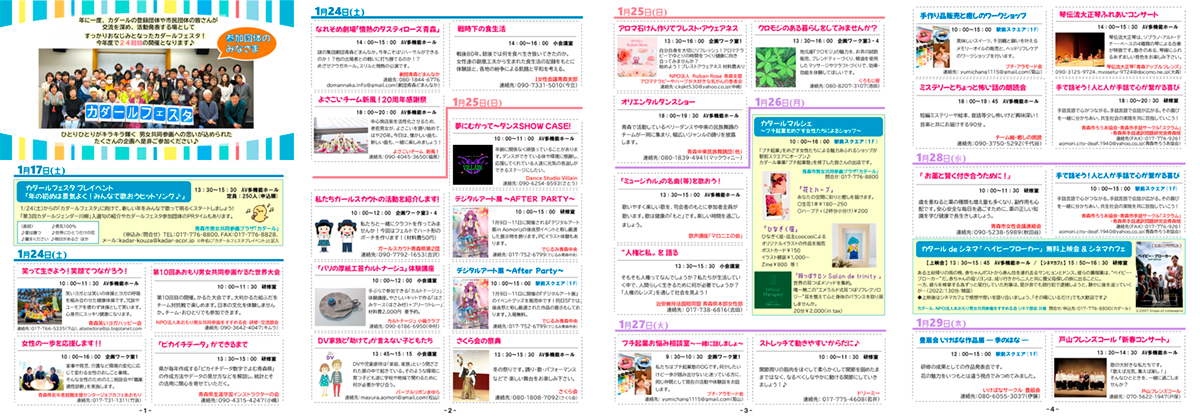 | 開催場所 | 青森市男女共同参画プラザ「カダール」全館(アウガ5階)/駅前スクエア(アウガ1階) |