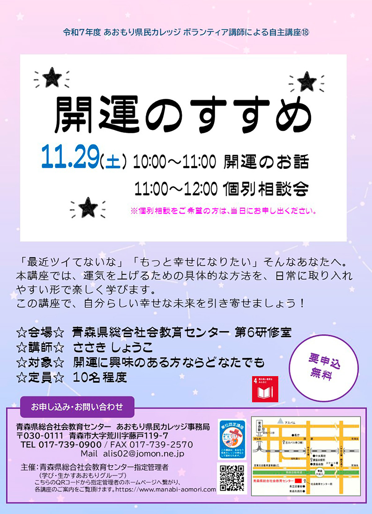 申込・お問い合わせ青森県総合社会教育センター あおもり県民カレッジ事務局