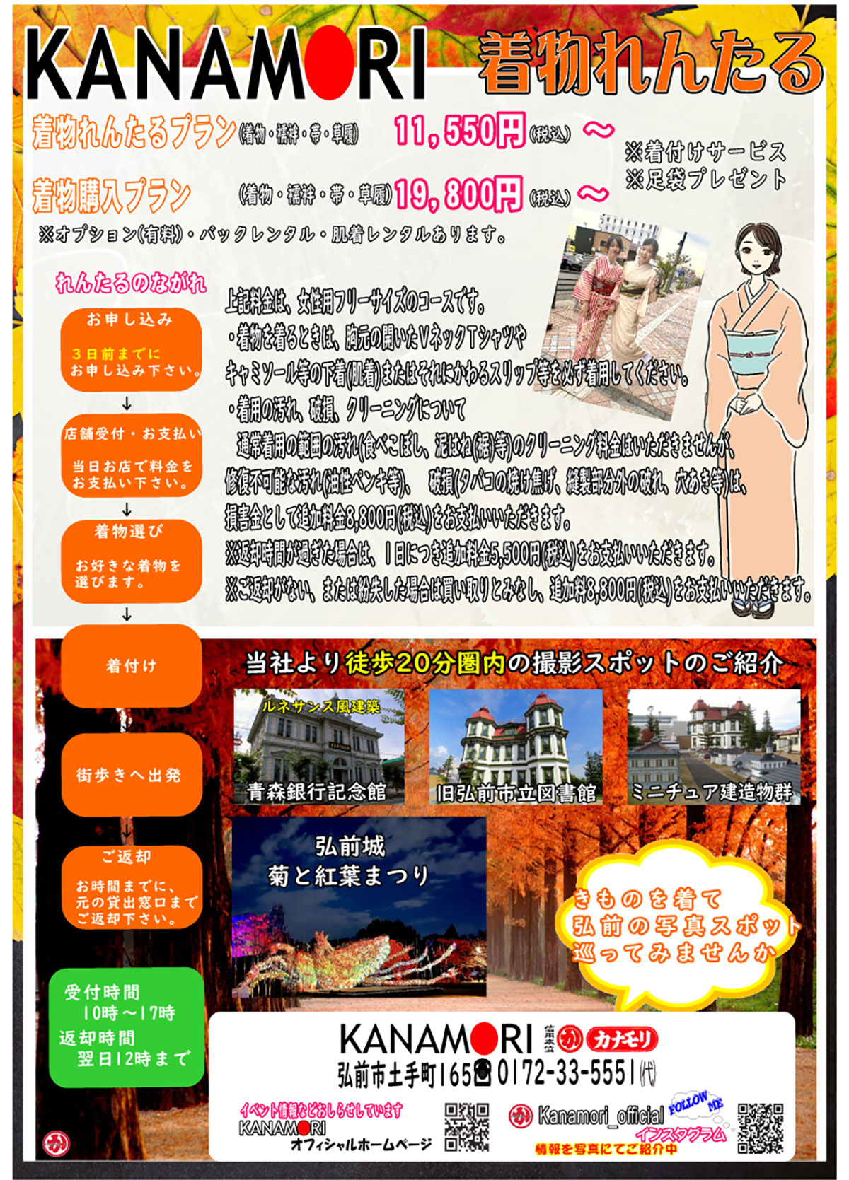 『きもの』を着て『きものが似合う街 弘前』を堪能していただきたく【街歩き 着物れんたる Kimono Rental】を行ってます。
