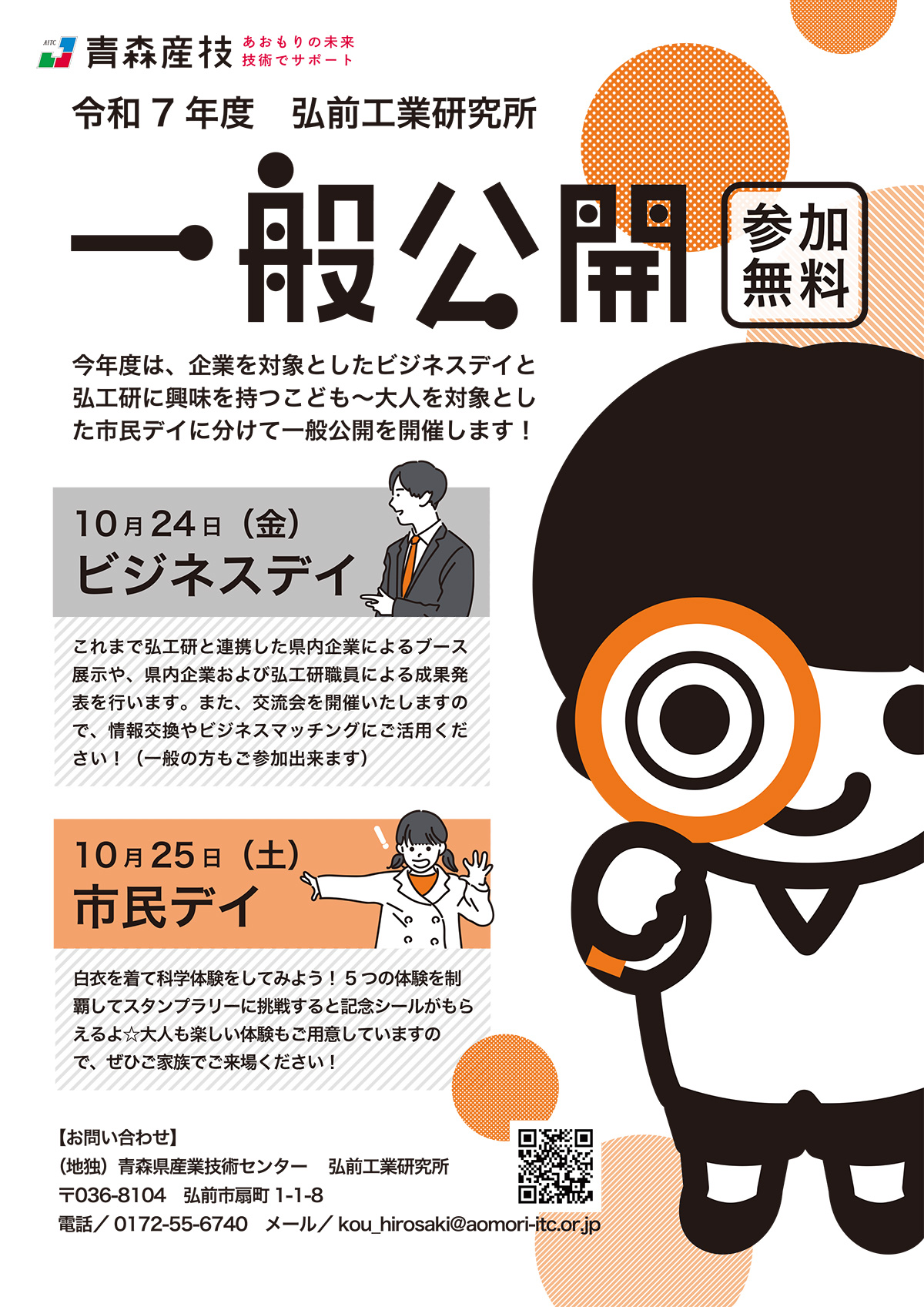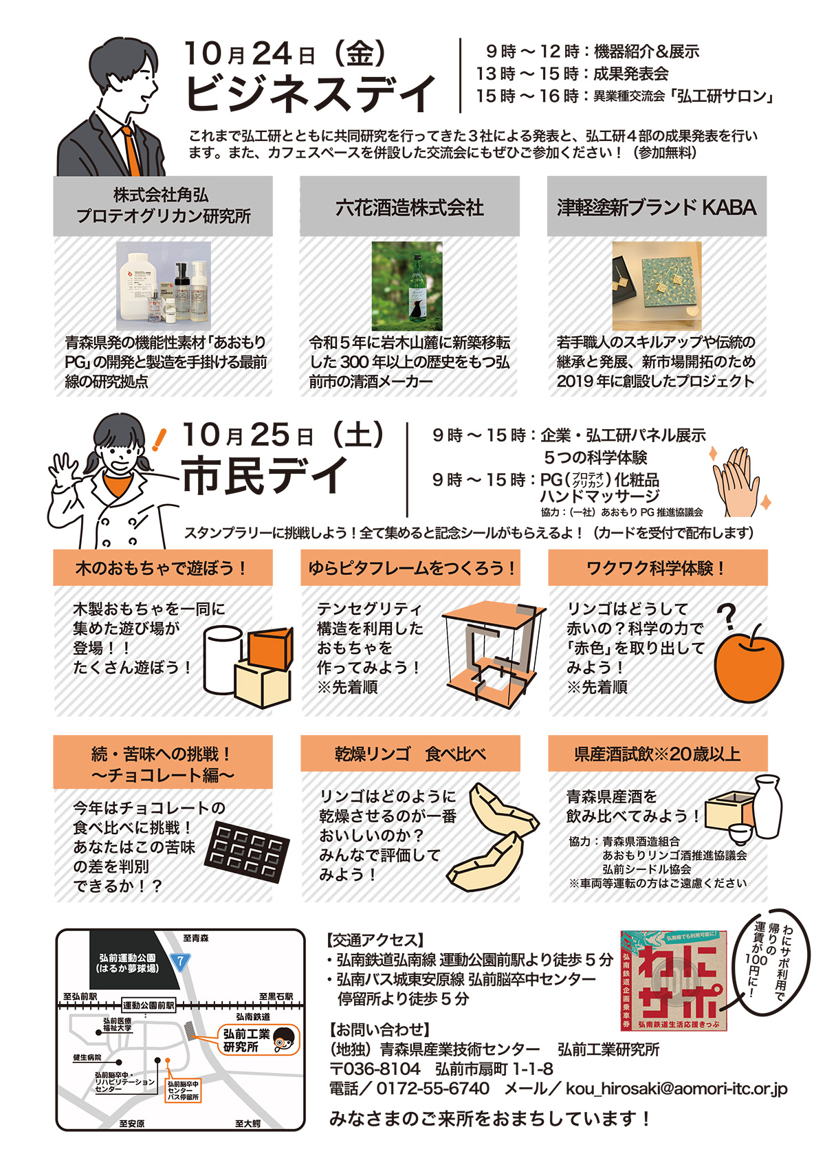 研究所の仕事や青森県の産業との関わりについて理解を深めて頂ける内容となっておりますので、この機会に是非ご来場ください。
