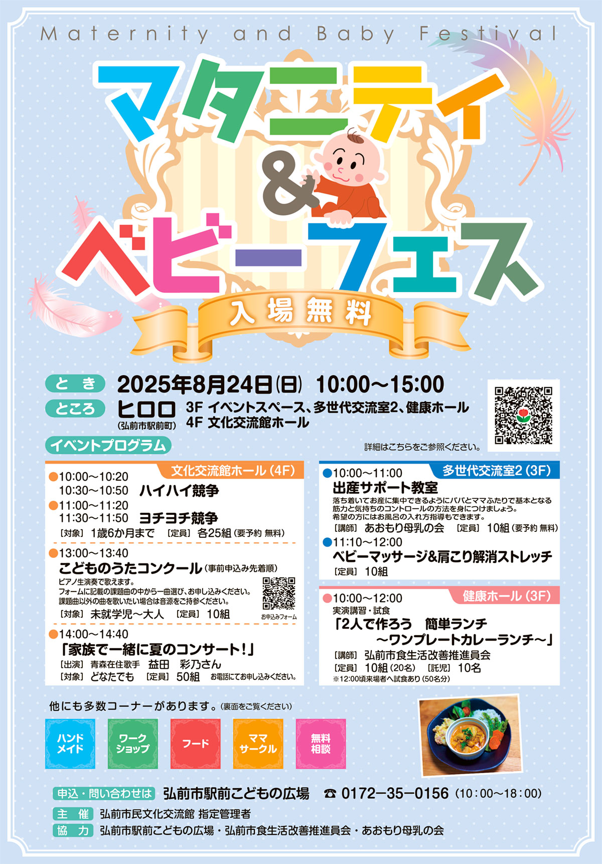 | お問い合わせ・申込 | 弘前駅前こどもの広場 0172-35-0156(10:00~18:00) |