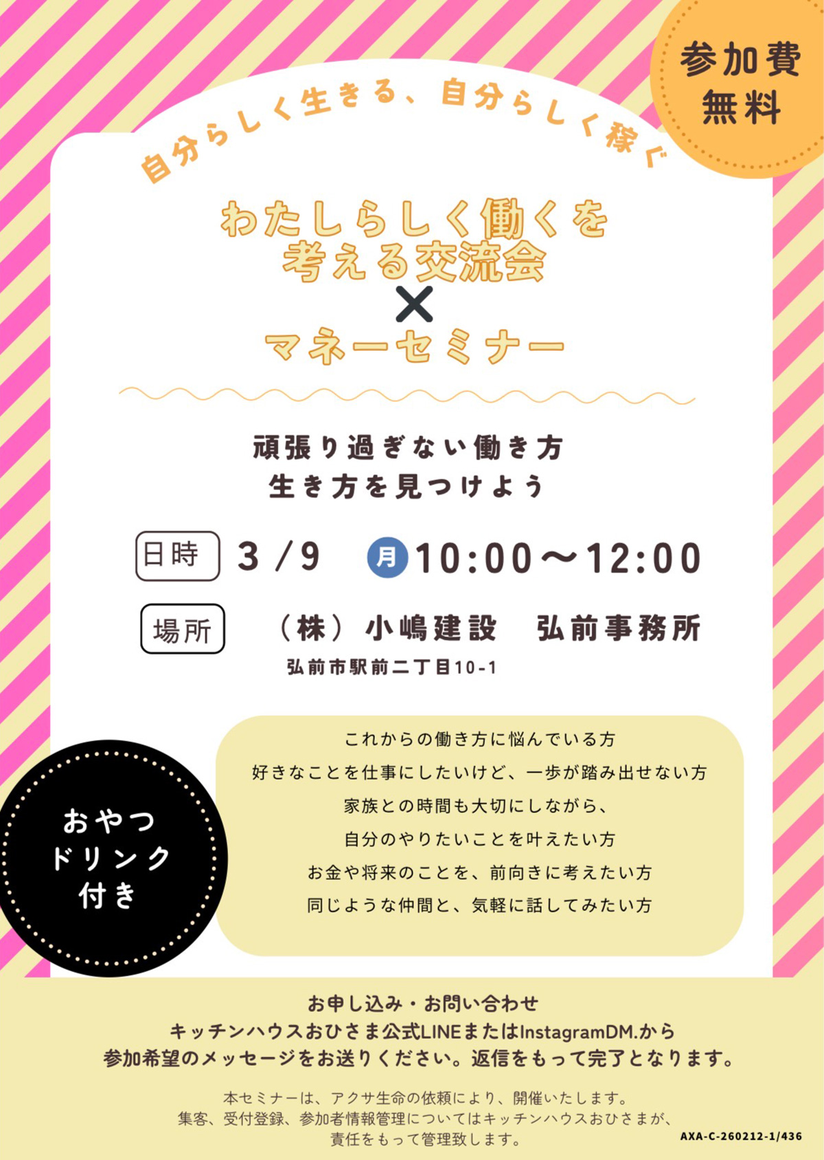 | 申込方法 | キッチンハウスおひさま公式LINEまたはInstagramDM.から参加希望のメッセージをお送りください。返信をもって完了となります。 |