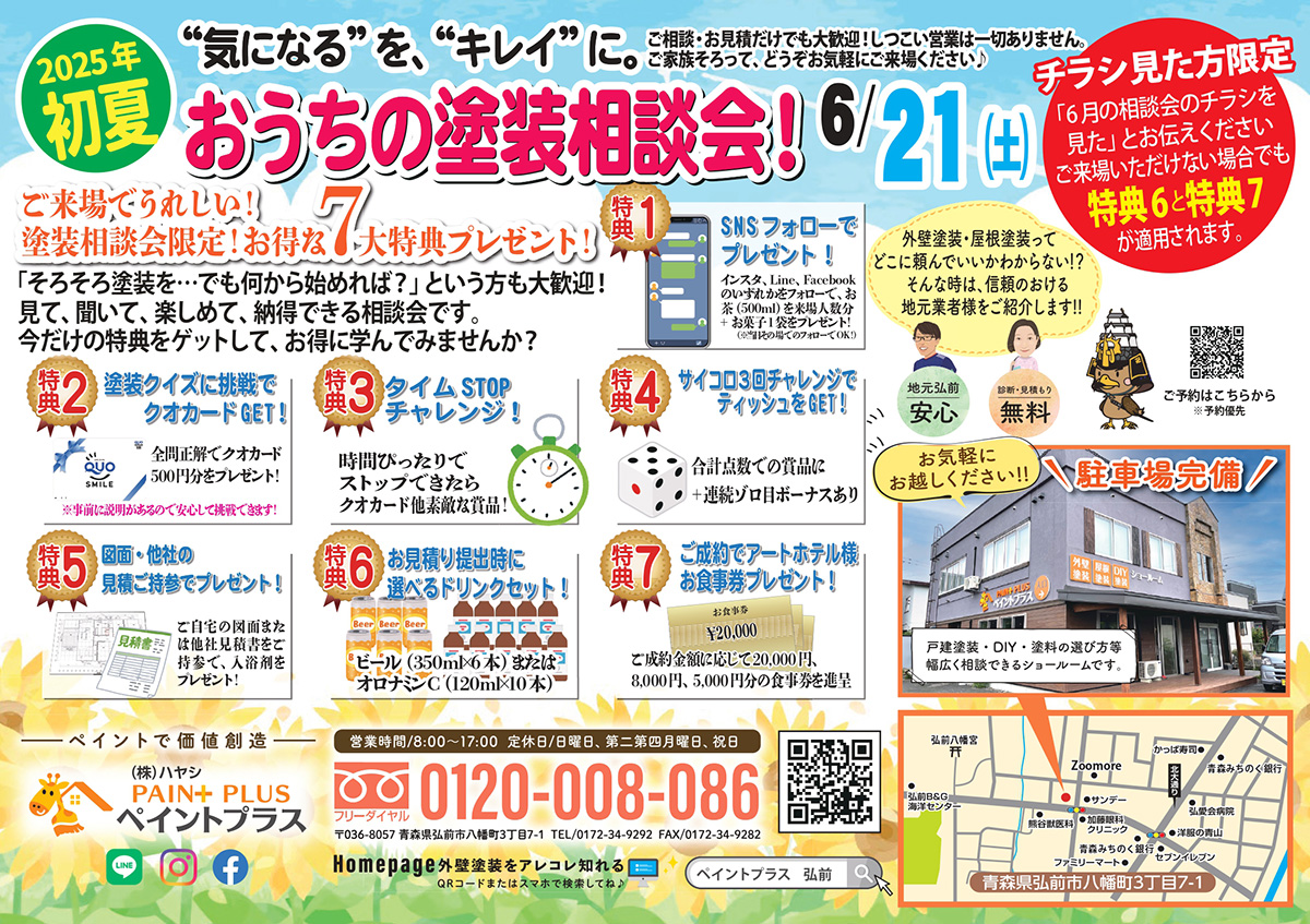 当日は花火大会の日なので、お忙しい方でも「6月の相談会のチラシを見た」とお伝えいただければ、見積特典と成約特典の対象になります!!