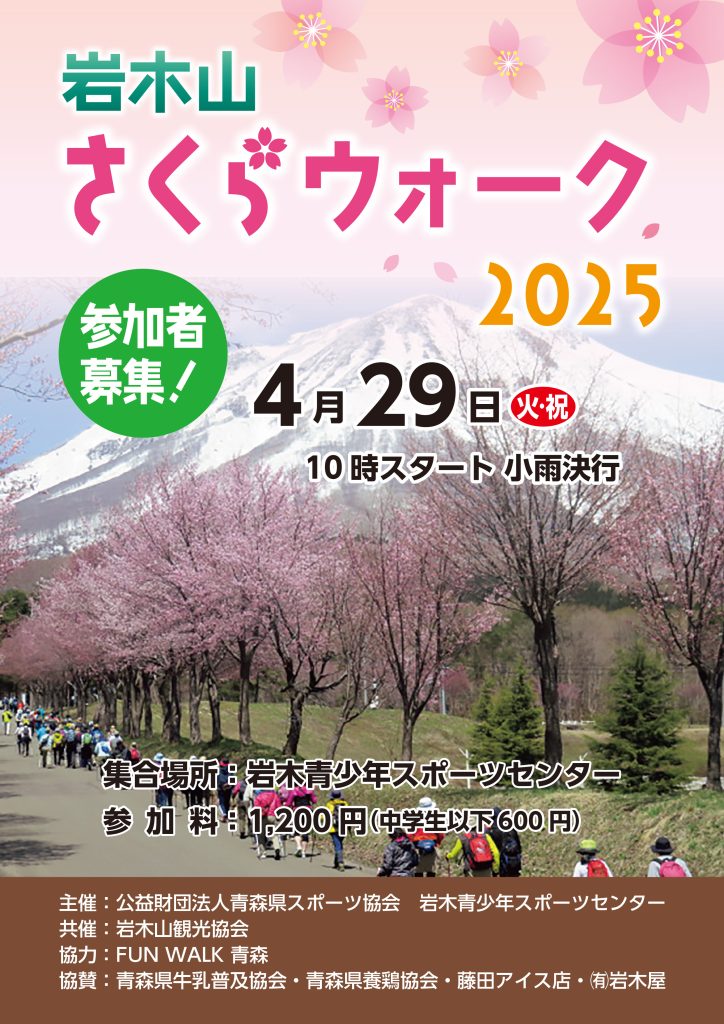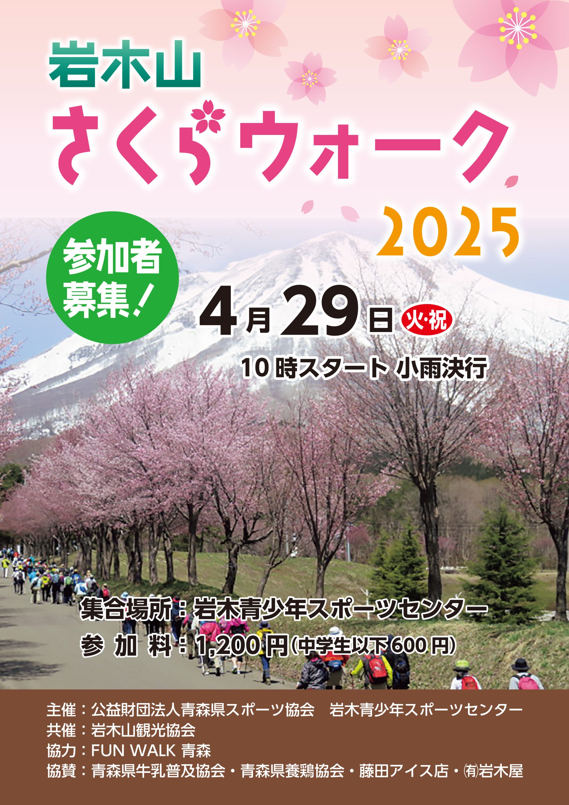 新春の岩木山の残雪と、紅色に映えるオオヤマザクラの桜並木(通称:世界一の桜並木)をゆったり楽しみながらウォーキングする会です。