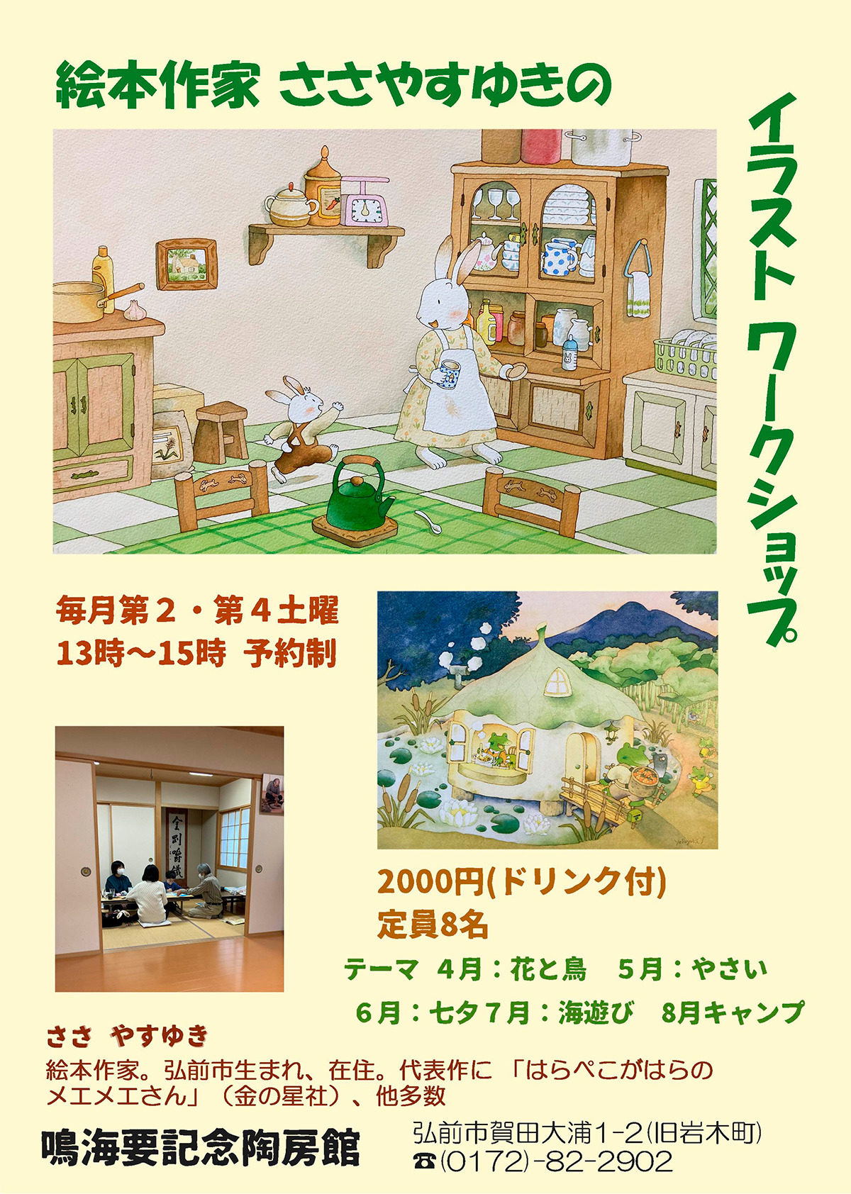 弘前市在住の絵本作家ささやすゆきによるイラスト教室プロの絵本作家から、イラストの描き方や水彩画のテクニックを教われます