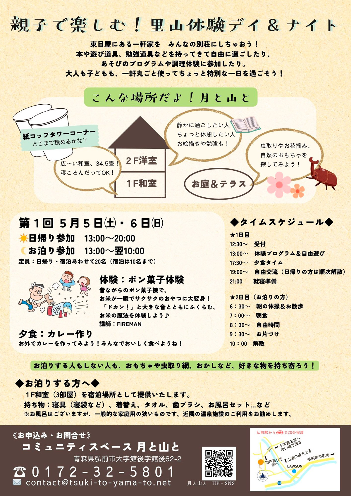 定員:日帰り・宿泊あわせて20名(宿泊は10名まで)