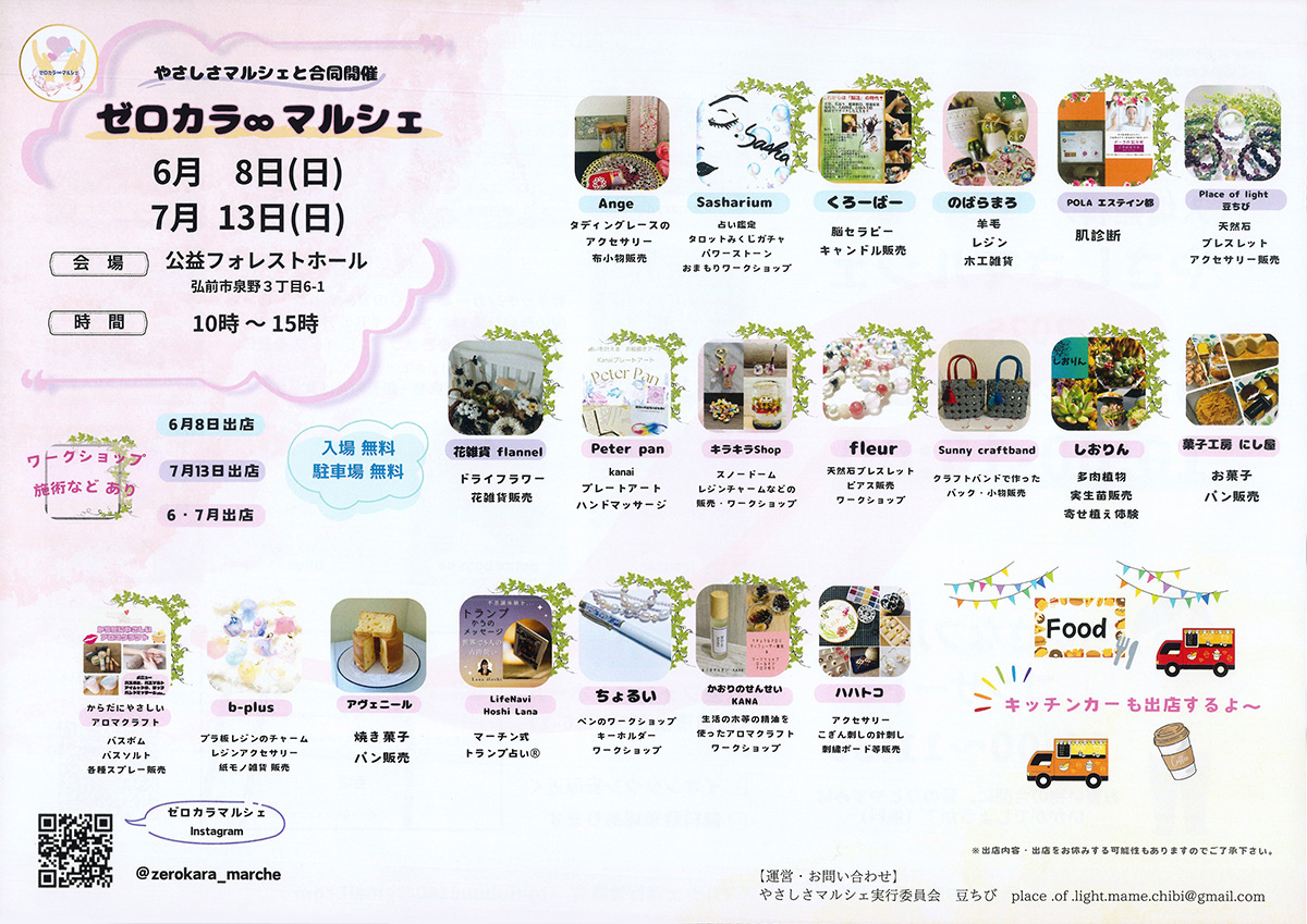 11:00~11:30お買い物の合間に、音のひとやすみはいかがでしょうか?(無料)マイバック持参にご協力ください同じ会場内で「ゼロカラ∞マルシェ」も同時開催!