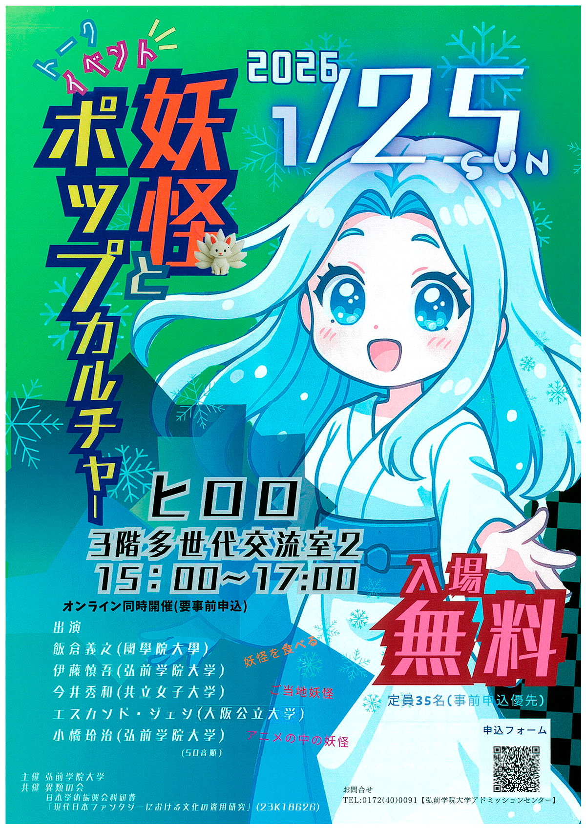 妖怪がポップカルチャーの中でどのように継承・再創造されていったか、文学や民俗学の専門家たちの妖怪談義を聴いたり、自由に語り合ったりしませんか?